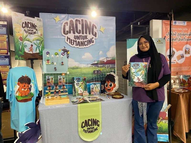 Salah satu booth yang menyita perhatian pengunjung adalah karya Naila Nabilatul Husna yang menyajikan sebuah picture book anak berjudul Cacing untuk Memancing.