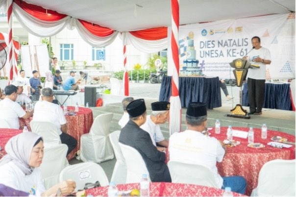 Acara ini menjadi momen reflektif sekaligus bentuk rasa syukur atas perjalanan panjang Unesa sebagai perguruan tinggi yang terus bertransformasi dan berdampak luas bagi masyarakat dan kehidupan bangsa.
