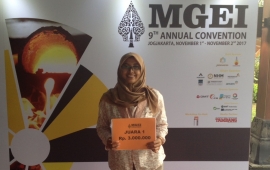 Tim mahasiswaDepartemenGeologiFakultas TeknikUGMmeraih juara pertamaStudent Research Poster Contestdalam kegiatanThe 9th MGEI Geometallurgy Annual Convention 2017di Yogyakarta,30 Oktober-2 November 2017lalu.Mereka adalahAhmad Faizal Amin, Eka Dhamayanti, Aldo Febriansyah ...