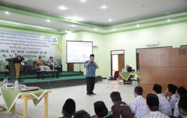 Raut bahagia terpancar dari wajah Menteri Riset, Teknologi, dan Pendidikan Tinggi Mohamad Nasir saat melihat semangat dan antusiasme santri Pondok Pesantren Mambaul Maarif Denanyar dalam Sosialisasi ...