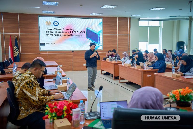 Unesa.ac.id., SURABAYA— Dalam rangka pengabdian kepada masyarakat skema lingkungan kampus, Labschool Universitas Negeri Surabaya (Unesa) menyelenggarakan pelatihan bertajuk ”Optimalisasi Media Sosial: Strategi dan Produksi Konten Labschool Unesa” pada Jumat, 4 Juli 2025.